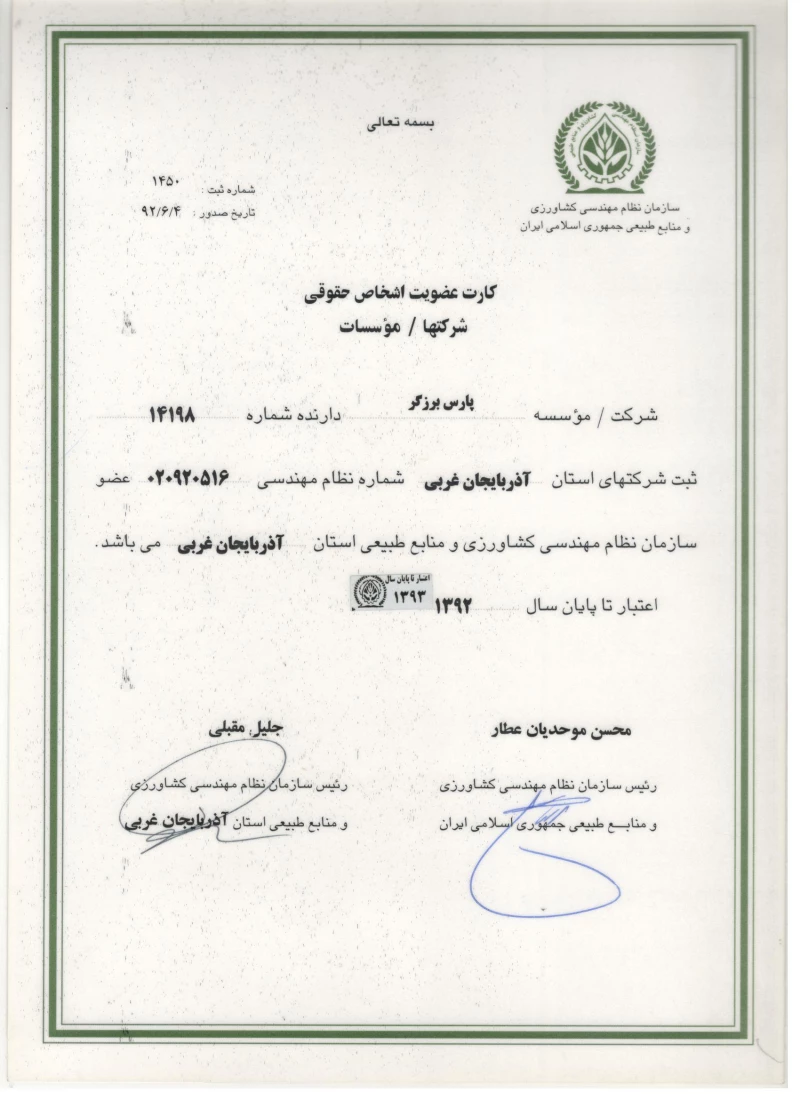 تامین کننده: پارس برزگر آذربایجان