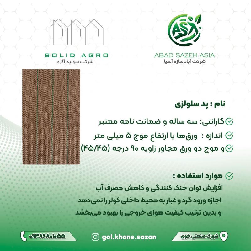 ⭕️پد سلولزی یا Cellulose Pad، یکی از مؤثرترین و پرکاربردترین اجزای سیستم‌های خنک‌کننده تبخیری در گلخانه‌ها، مرغداری‌ها، دامداری‌ها، سالن‌های صنعتی و حتی برخی از سیستم‌های تهویه مطبوع است.