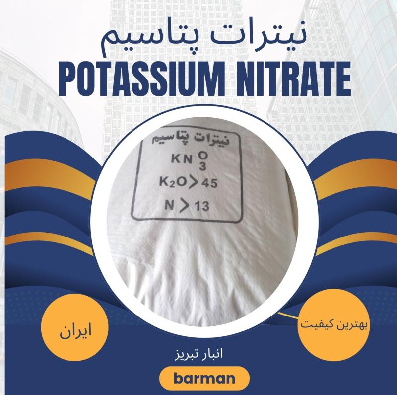 جامد محلول در آب با فرمول شیمیایی KNO3 و یک اکسید‌کننده نسبتا قوی به رنگ سفید می‌باشد. این ماده از دو عنصر بسیار مهم نیتروژن و پتاسیم تشکیل شده است. در کود نیترات پتاسیم میزان پتاسیم بیشتر از ازت است چیزی در حدود 3 برابر می‌باشد.
