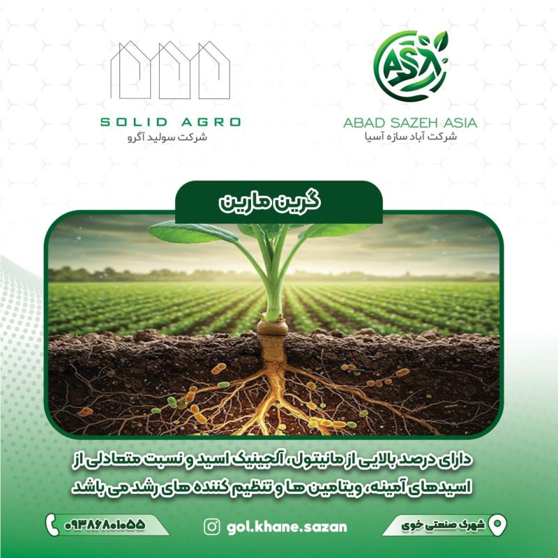 ???? "گرین مارین، عصاره‌ای از دل دریا برای جان‌بخشی به خاک؛ با همراهی شرکت آباد سازه آسیا، سبزترین راه به سوی کشاورزی پایدار و پربار." ????????