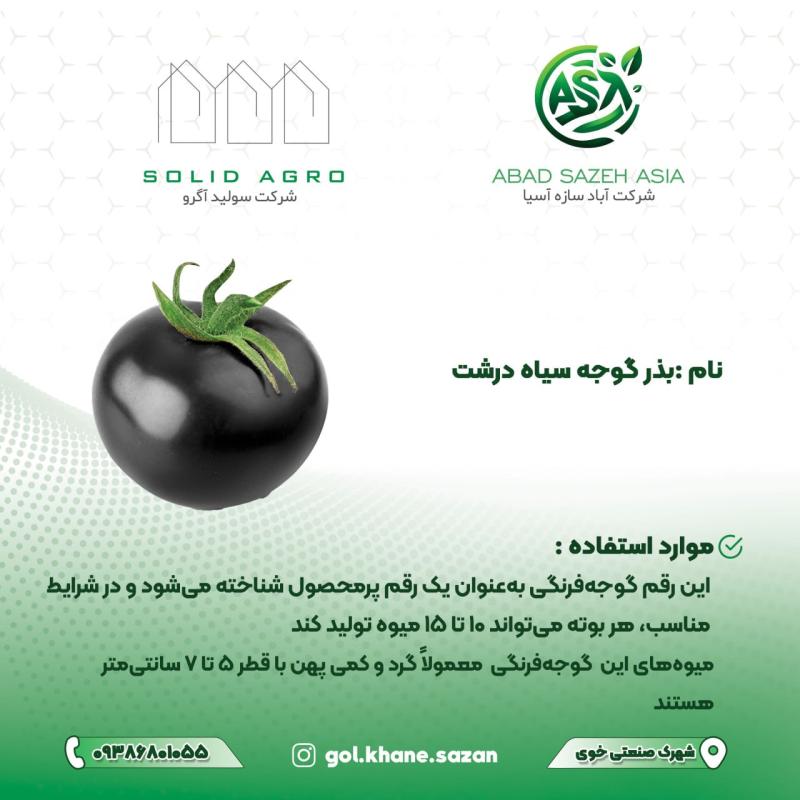 ????«آباد سازه آسیا مفتخر است با عرضه بهترین بذرهای گوجه سیاه درشت، به کشاورزان عزیز کمک کند تا محصولی بی‌نظیر، با طعم خاص و کیفیت ممتاز تولید کنند؛ همراهی شما در مسیر کشاورزی نوین و بهره‌وری پایدار، برای ساختن فردایی پررونق و سرشار از موفقیت.»????????