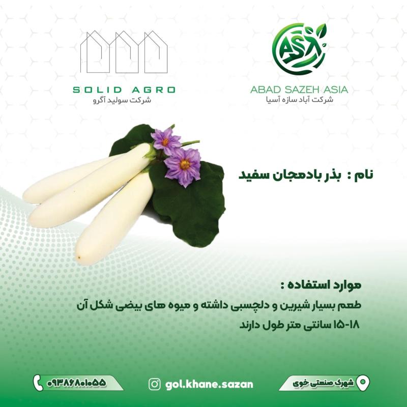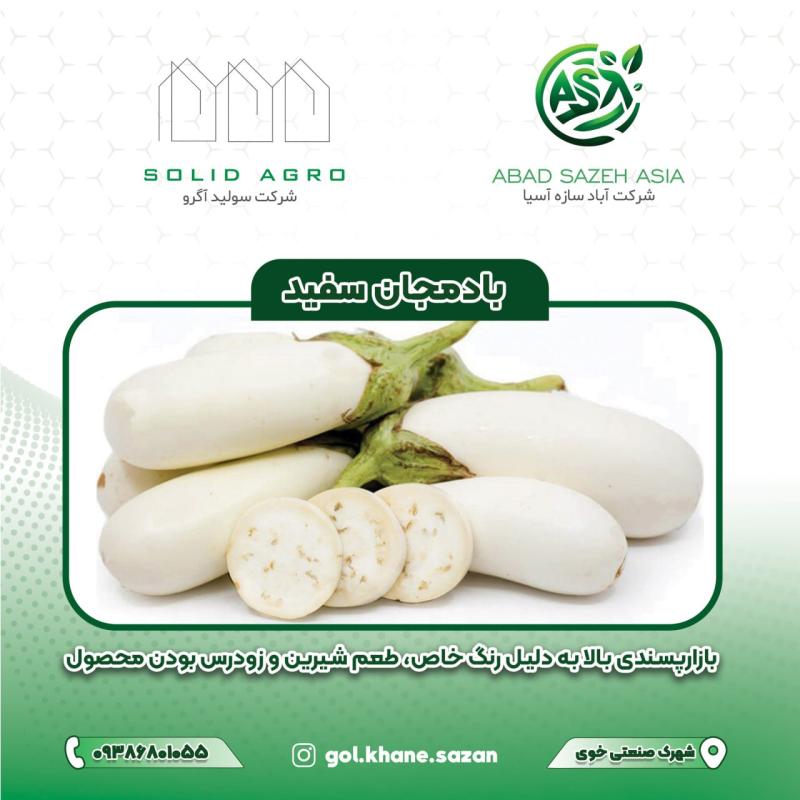 ????"بادمجان سفید، با لطافت و کیفیت کم‌نظیرش، نمادی از محصول سالم و ارزشمند است؛ همان‌گونه که شرکت آباد سازه آسیا، با دانش روز و خدمات دقیق، پشتوانه‌ای مطمئن برای رشد کشاورزی نوین ایران است."????????