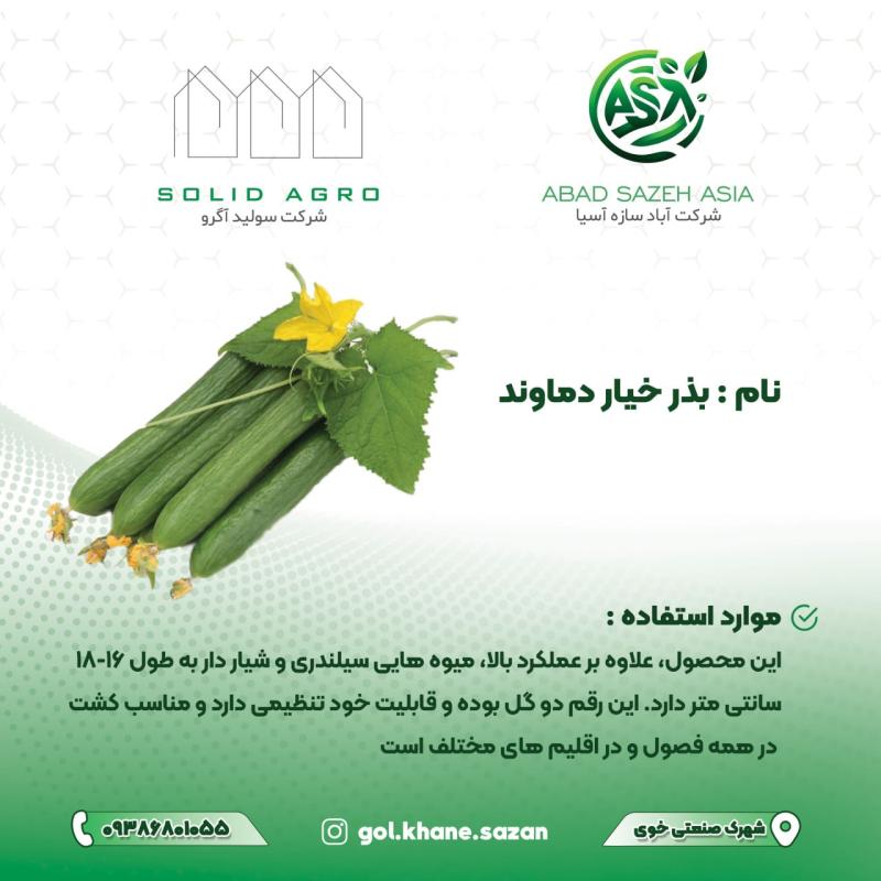 ????"خیار دماوند با طراوت بی‌نظیرش، نشانه‌ای از طبیعت پاک و خالص است؛ همان‌طور که شرکت آباد سازه آسیا با تعهد و تخصص، پایه‌های ساختن آینده‌ای سبز و پایدار را مستحکم می‌کند."????????