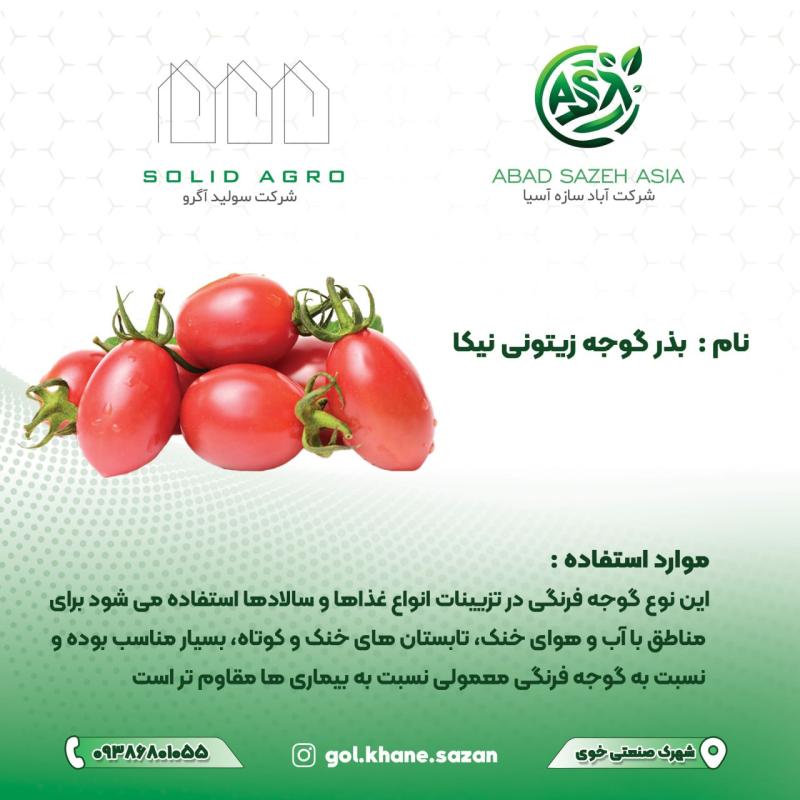 ????"گوجه زیتونی نیکا، ترکیبی از زیبایی، طعم و عملکرد بالا؛ و با همراهی آباد سازه آسیا، هر مزرعه به نمایشگاهی از کیفیت و اعتماد تبدیل می‌شود."????????