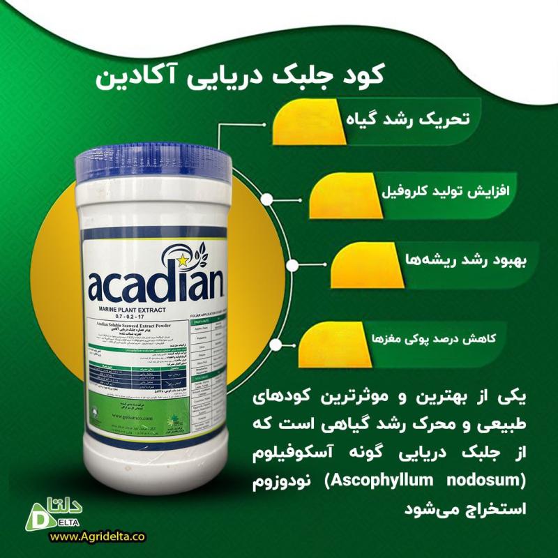 کود جلبک دریایی آکادین یکی از بهترین و موثرترین کودهای طبیعی و محرک رشد گیاهی است که از جلبک دریایی گونه آسکوفیلوم نودوزوم (Ascophyllum nodosum) استخراج می‌شود. این کود سرشار از ترکیبات فعال شامل نیتروژن، فسفر، پتاسیم، اسیدهای آمینه، مواد آلی و ریزمغذی‌های ضروری است.