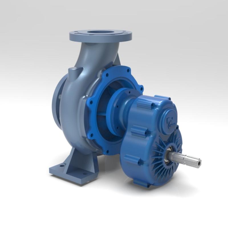 پمپ ETA150-315 از نوع گریز از مرکز با ورودی 8" و خروجی 6" جهت انتقال آب در خطوط آبیاری طراحی شده است. این پمپ بههمراه یک گیربکس سرخود با نسبت تبدیل 1:3 عرضه میشود که توان موتور را به دور مناسب پمپ (معادل 1500 دور/دقیقه) تبدیل میکند؛ بنابراین نیاز به الکتروموتور با دور بالا کاهش یافته و استهلاک قطعات متحرک کمتر میشود. این طراحی برای کاربری در مزرعه، گلخانه و کارگاههای کوچک مناسب و اقتصادی است.
