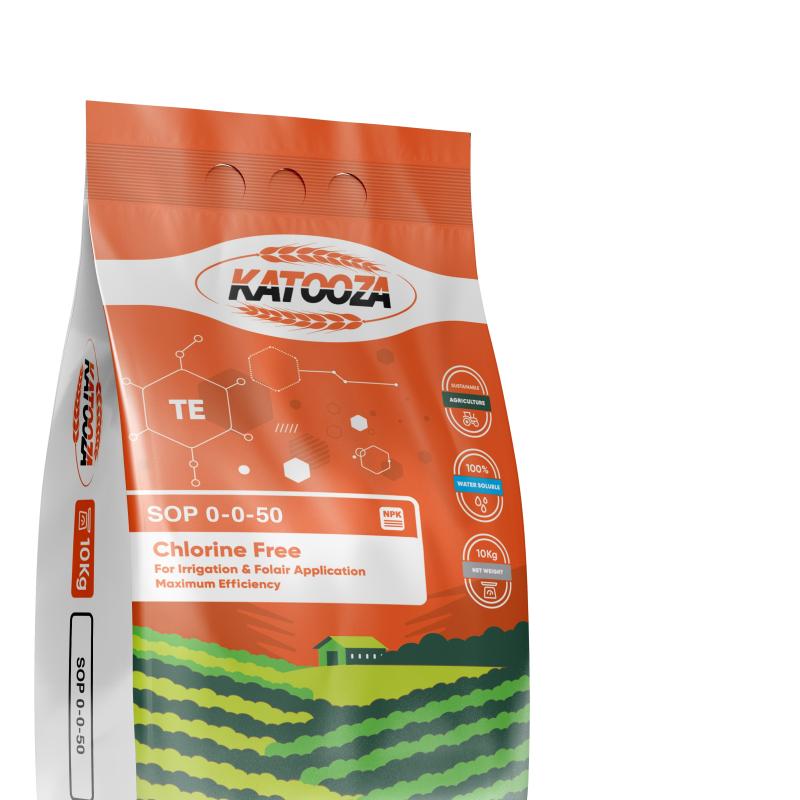 سولفات پتاسیم کاتوزا در بسته بندی های 10 کیلوگرمی ساخت شرکت آرنا توسعه تحت لیسانس کانادا می باشد. این محصول پودری بوده و دارای پتاسیم به میزان 51% و گوگرد به میزان 18% می باشد. سولفات پتاسیم یا همان سولوپتاس یکی از ترکیبات پر کاربرد در کشاورزی و باغداری می باشد.