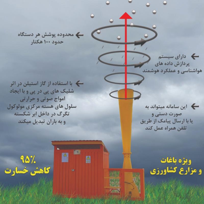 سامانه ضد تگرگ یا دستگاههای تگرگ شکن با قابلیت پوشش 100 هکتار بدون نیاز به برق و با قابلیت فعال سازی دستگاه از هر نقطه جهان