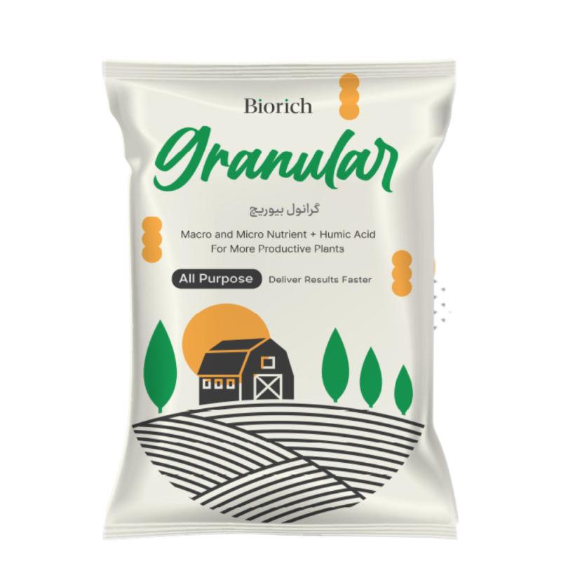 گوگرد گرانول بیوریچ فرمولی تخصصی از گوگرد عنصری ۴۰% همراه با ۱۰% هیومیک اسید از منابع لئوناردیت است که برای اصلاح بافت و اسیدیته خاکهای شور و قلیایی طراحی شده و به افزایش جذب عناصر غذایی و بهبود عملکرد محصولات کشاورزی کمک میکند. این محصول در بستهبندیهای ۲۵ کیلوگرمی عرضه میشود و برای کاربرد چالکود با میزان مصرف ۸۰۰ تا ۱۰۰۰ کیلوگرم در هکتار توصیه میگردد.