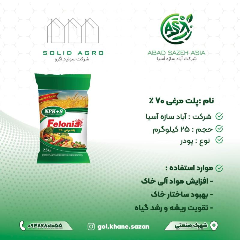 خلاصه: کود پلت مرغی 70٪ فلونیا یک کود آلی فشرده و خشکشده از فضولات مرغی با حدود 70٪ ماده خشک است که برای افزایش حاصلخیزی خاک، تأمین عناصر غذایی (نظیر نیتروژن، فسفر و پتاسیم)، بهبود ساختار خاک و افزایش ظرفیت نگهداری آب طراحی شده است. این محصول در بستهبندی 25 کیلویی عرضه میشود و مناسب زراعت، سبزی و صیفی و باغات است.