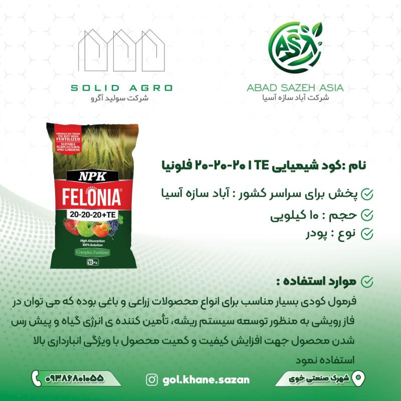 خلاصه: کود 20-20-20 پودری فلونیا یک کود کامل و تعادلی با درصدهای برابر نیتروژن، فسفر و پتاس (هر کدام 20%) است که مناسب مراحل مختلف رشد گیاه، قابل استفاده در محلولپاشی و کودآبیاری و مناسب گلخانه، باغات، مزارع و گلدان میباشد. این کود جذب سریع دارد، به رشد رویشی و ریشهزایی کمک میکند و برای تقویت سلامت کلی گیاه کاربردی است.