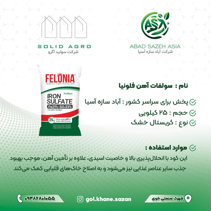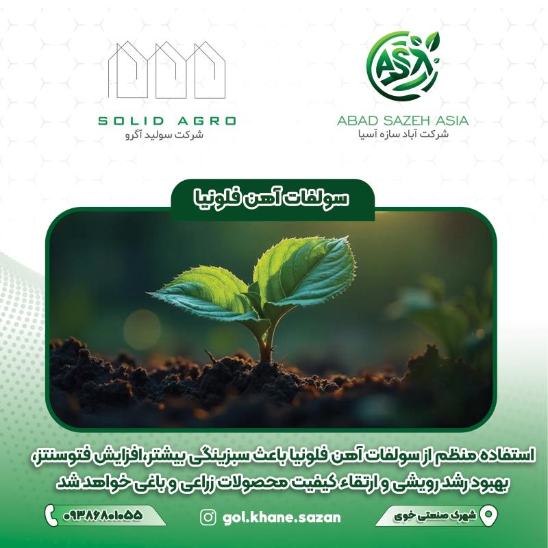 شرکت آباد سازه آسیا (برند: آباد سازه)، تاسیس شده در سال 1382، تامینکننده و نماینده انحصاری کارخانههای معتبر خارجی در ایران است و در زمینه واردات و تأمین متریال و تجهیزات گلخانهای از قبیل سازه گلخانه، نایلون UV، سیستمهای آبیاری خودکار، فن و پد، توری ضدهحشره، کوکوپیت و ملزومات مرتبط فعالیت میکند. این شرکت خدماتی فراتر از تأمین محصول ارائه میدهد از جمله مشاوره رایگان و مدیریت فنی گلخانه که میتواند خریداران را در انتخاب روش مناسب مصرف سولفات آهن و دیگر کودها راهنمایی کند.