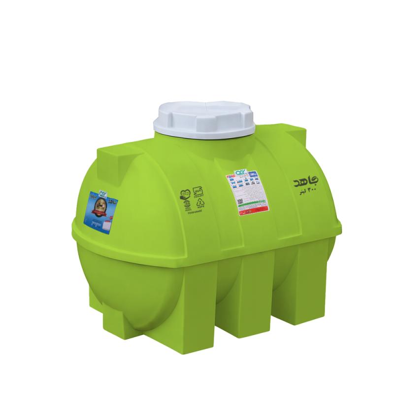 مخزن 300 لیتری افقی سه لایه شرکت جاهد یک راهکار اقتصادی و بادوام برای ذخیره آب و مایعات غیرخطرناک است. این مخزن با ظرفیت دقیق 300 لیتر و طراحی افقی (خوابیده) مناسب نصب در فضاهای محدود پشتبام، موتورخانه و فضاهای کشاورزی است. جنس بدنه از پلیاتیلن بهداشتی درجه یک (Food Grade) تهیه شده و لایه داخلی آبی رنگ ویژگی آنتیباکتریال دارد که برای نگهداری آب شرب مناسب است.