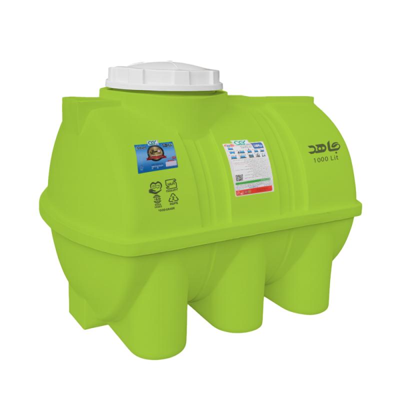 مخزن 1000 لیتری افقی سه لایه پلی اتیلن سبز جاهد؛ انتخابی مطمئن برای ذخیرهسازی آب شرب و مایعات مجاز با ساختار سهلایه بهداشتی، مقاومت بالا در برابر نور و ضربه، و گارانتی و خدمات پس از فروش جامع.