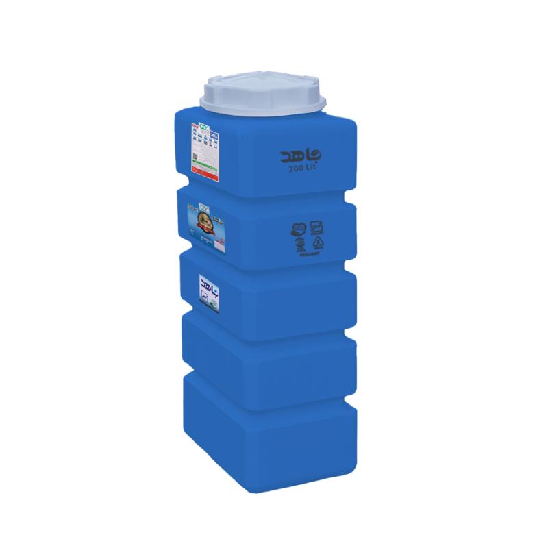 این مخزن از جنس پلیاتیلن بهداشتی درجه یک (Food Grade) با ساختار سه لایه ساخته شده است: لایه داخلی آبی و آنتیباکتریال برای حفظ کیفیت آب، لایه میانی مشکی تقویتشده جهت افزایش استحکام و جلوگیری از نفوذ نور، و لایه خارجی مقاوم به UV برای دوام در برابر نور خورشید و شرایط جوی. ظرفیت واقعی 200 لیتر با ضخامت مناسب بدنه، مقاومت در برابر ضربه و تغییرات دمایی را تضمین میکند.
